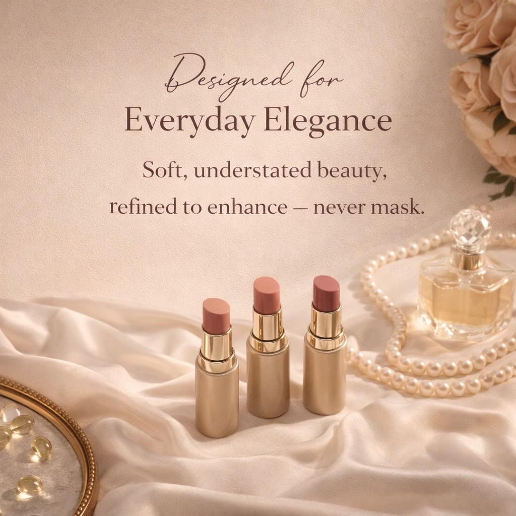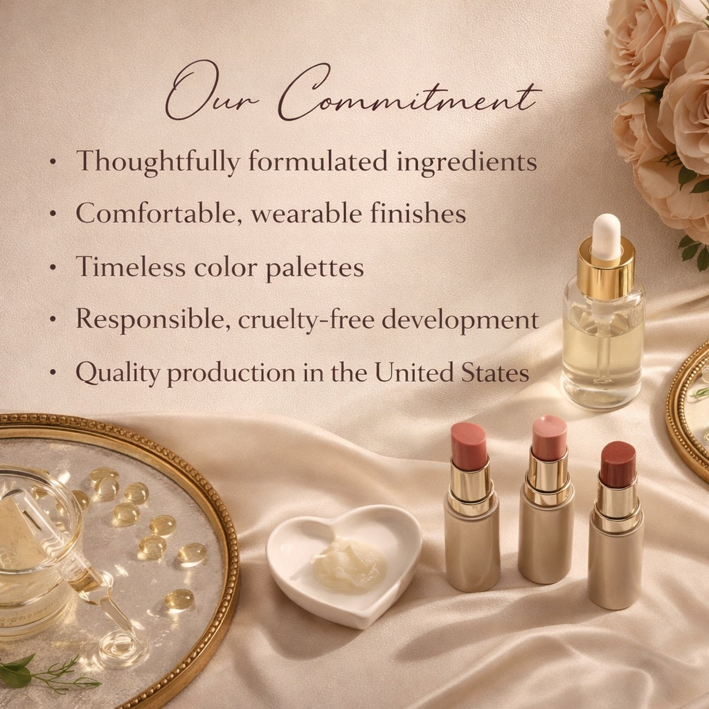 We create products that enhance your natural features without overwhelming them. Each formula is thoughtfully developed to deliver performance, comfort, and elegance — without excess weight, excess shine, or excess claims.